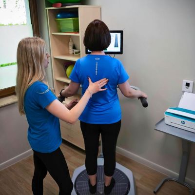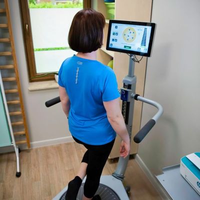 Platforma balansowa, nowoczesne urządzenie do oceny parametrów równowagi, poprawy funkcji chodu, poprawy czucia mięśniowego i stabilności. Bardzo przydatne dla pacjentów po operacjach kończyn dolnych, bioder, po urazach, u pacjentów po udarach, z zaburzeniami równowagi i kontroli ciała w przestrzeni